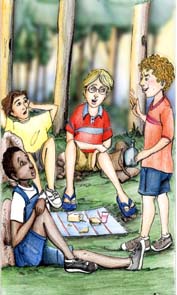 Certo dia um grupo de meninos, em férias, resolveu fazer um piquenique no bosque, próximo àquela casa.