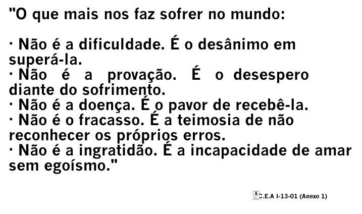 Não é a provação. É o desespero diante do sofrimento.                                          Não é a doença. É o pavor de recebê-la.Não é o fracasso. É a teimosia de não reconhecer os próprios erros.Não é a ingratidão. É a incapacidade de amar sem egoísmo.”