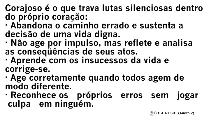 ü Abandona o caminho errado e sustenta a decisão de uma vida digna.ü Não age por impulso, mas reflete e analisa as conseqüências de seus atos.
